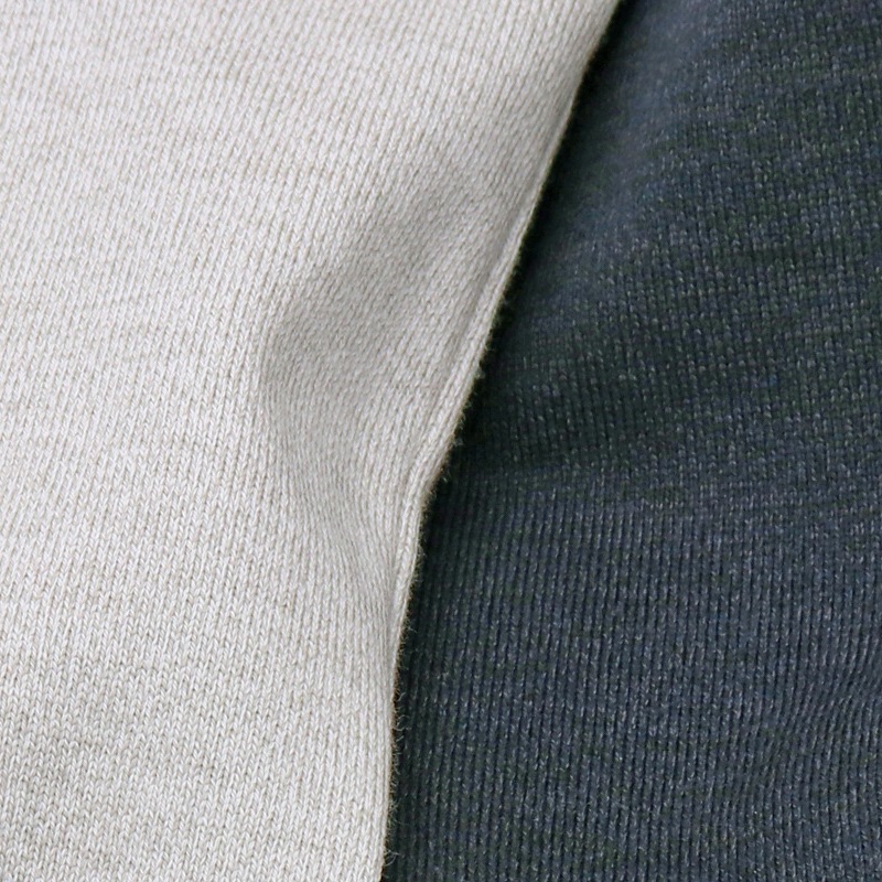 上質な糸を贅沢に使ってこれ以上出来ないというくらい目を詰めて編んだ生地は8.5オンスの重量を持ちながら、ヘビーオンス=カジュアルのイメージを覆す滑らかな肌ざわりを実現しました。