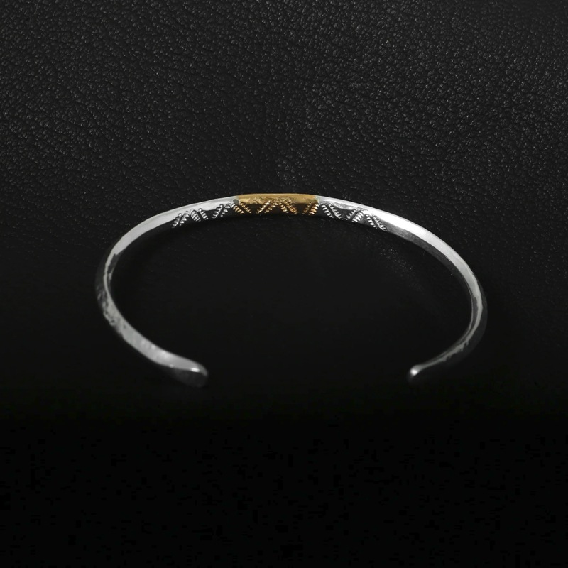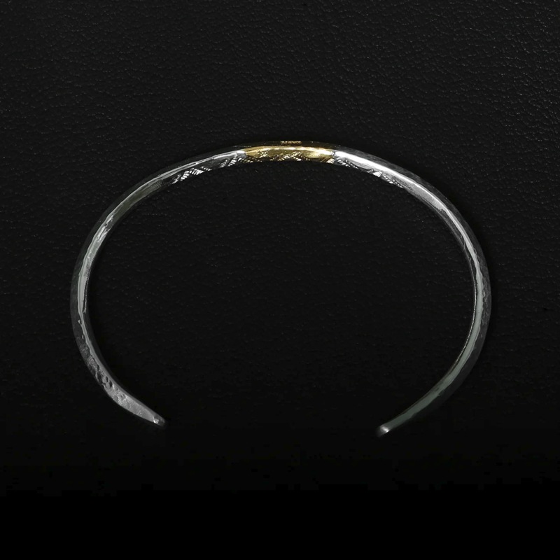 モト MOTO 月と太陽 ネイティブスタンプ バングル TSUKI TO TAIYO NATIVE STAMP BANGLE (999SILVER&K24 GOLD ACCENT) Sサイズ BTN-10
