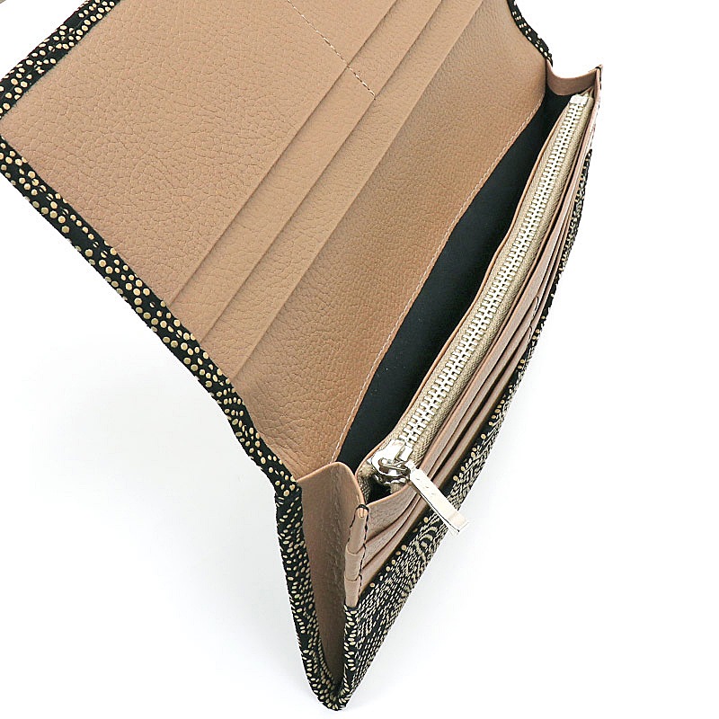 奈良印傳 ~印傳工房南都~ 背面ポケット付き長財布 内側シボ 漆印傳 印伝 M-INDEN